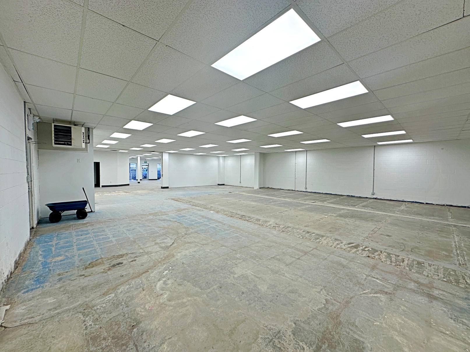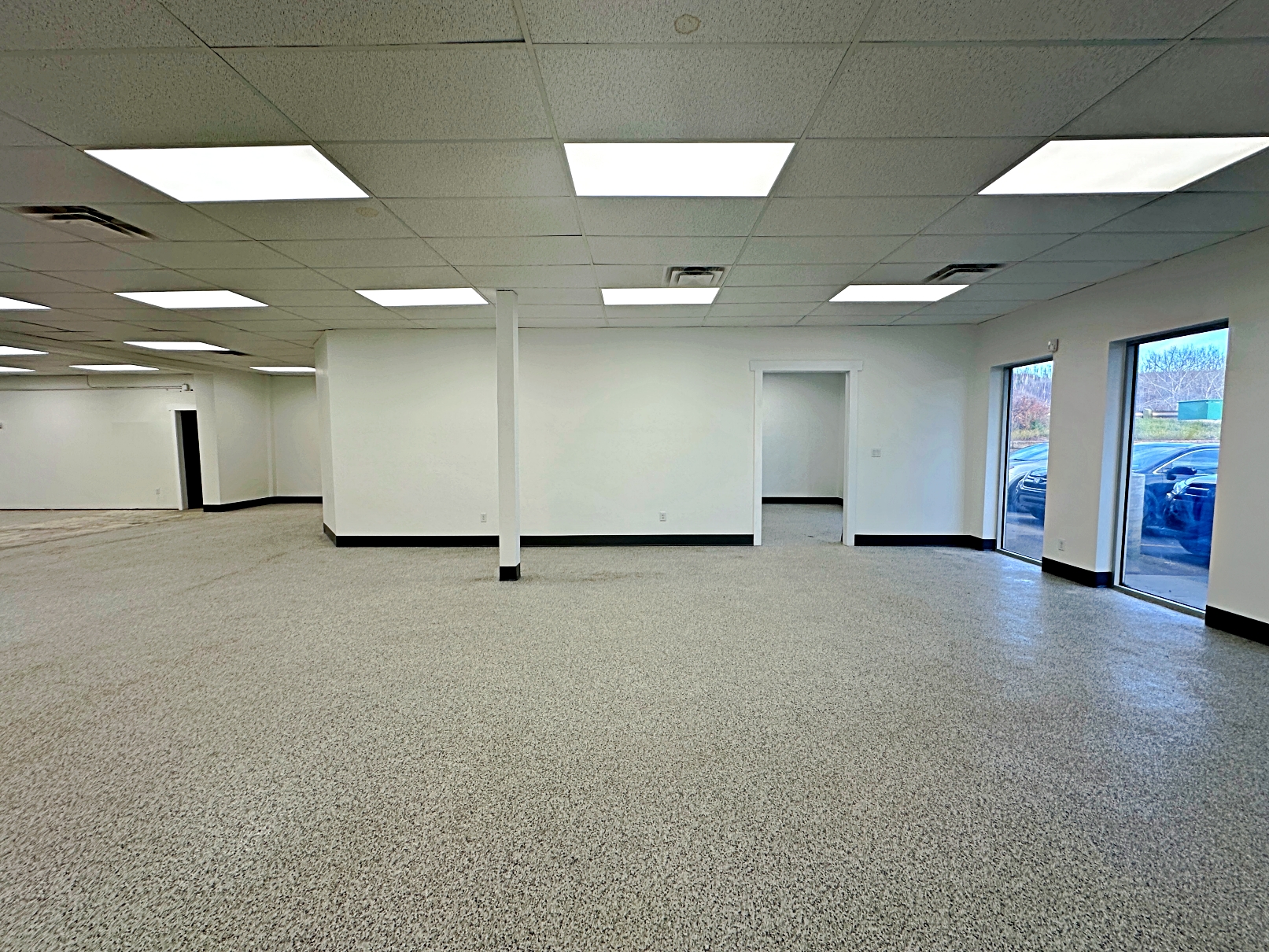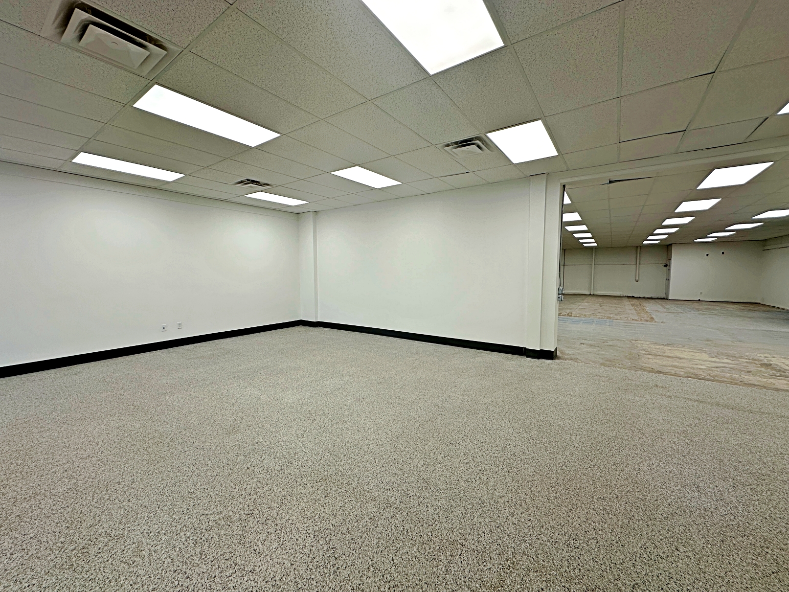 - Features large storefront display windows, a spacious front showroom, two washrooms, a staff room with roughed-in plumbing for a kitchenette, and a rear warehouse area with potential to add a rear double loading door for flexible access. Three dedicated parking stalls are available.