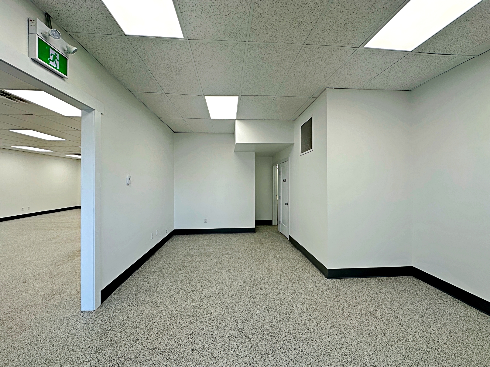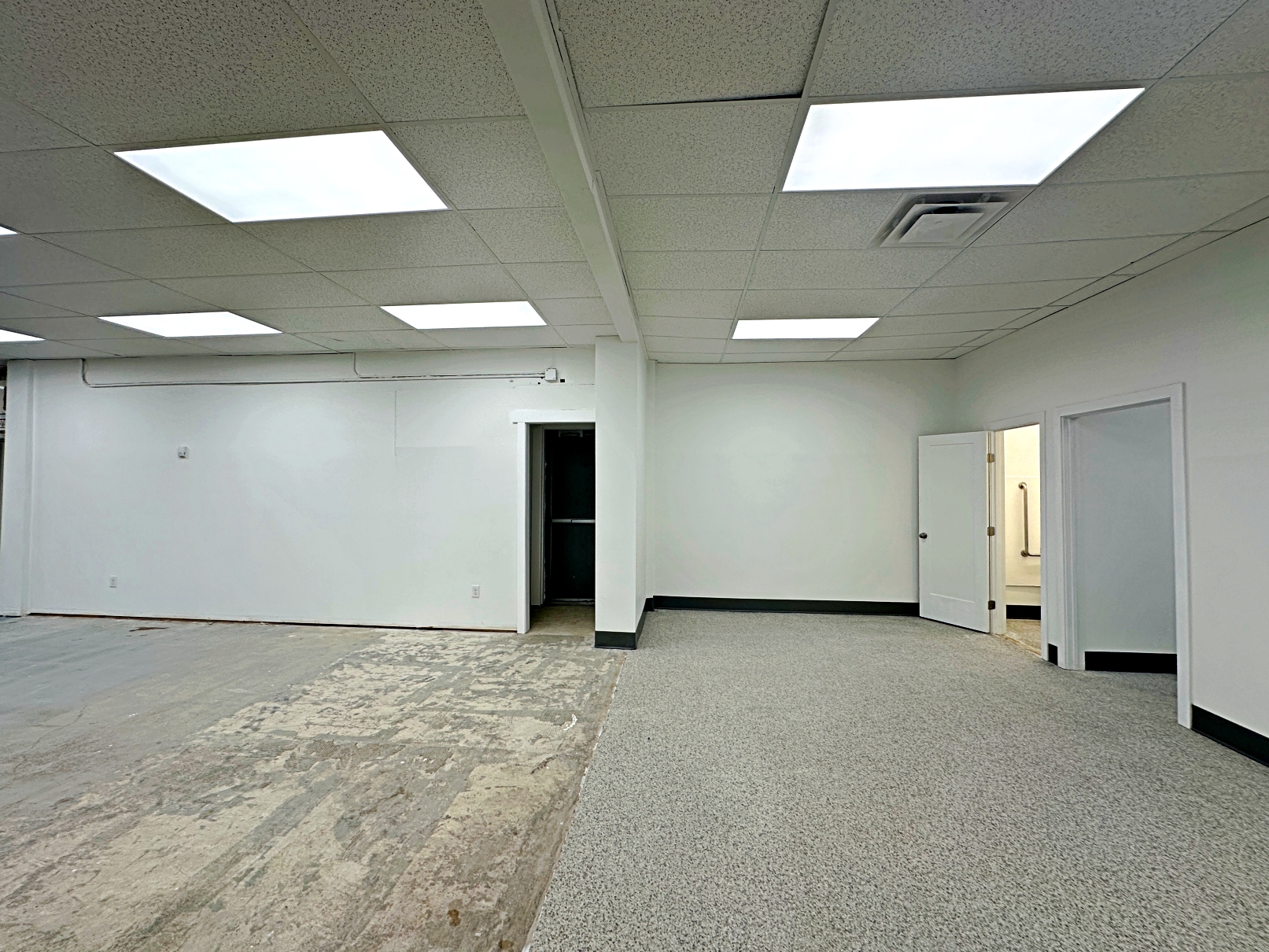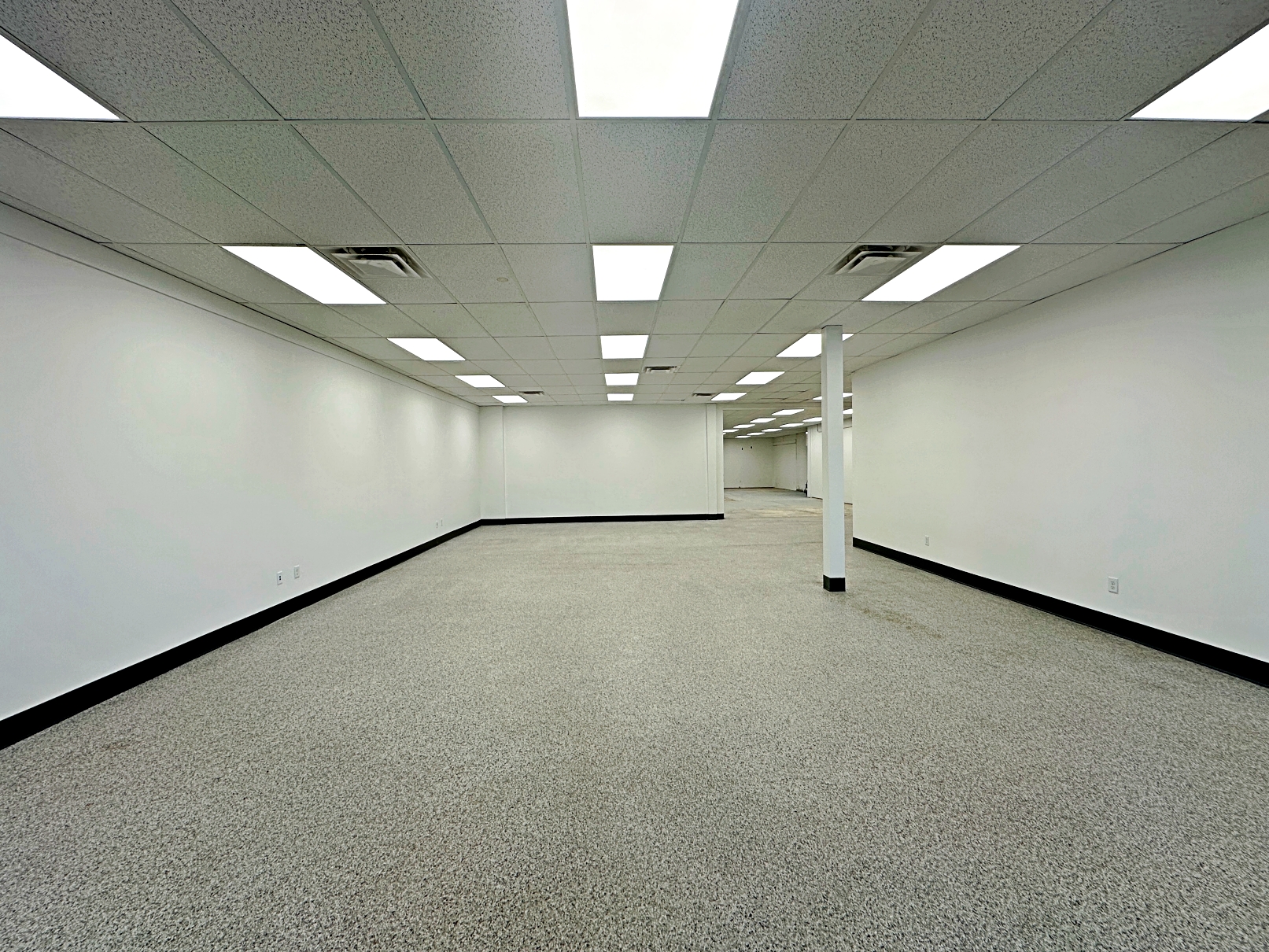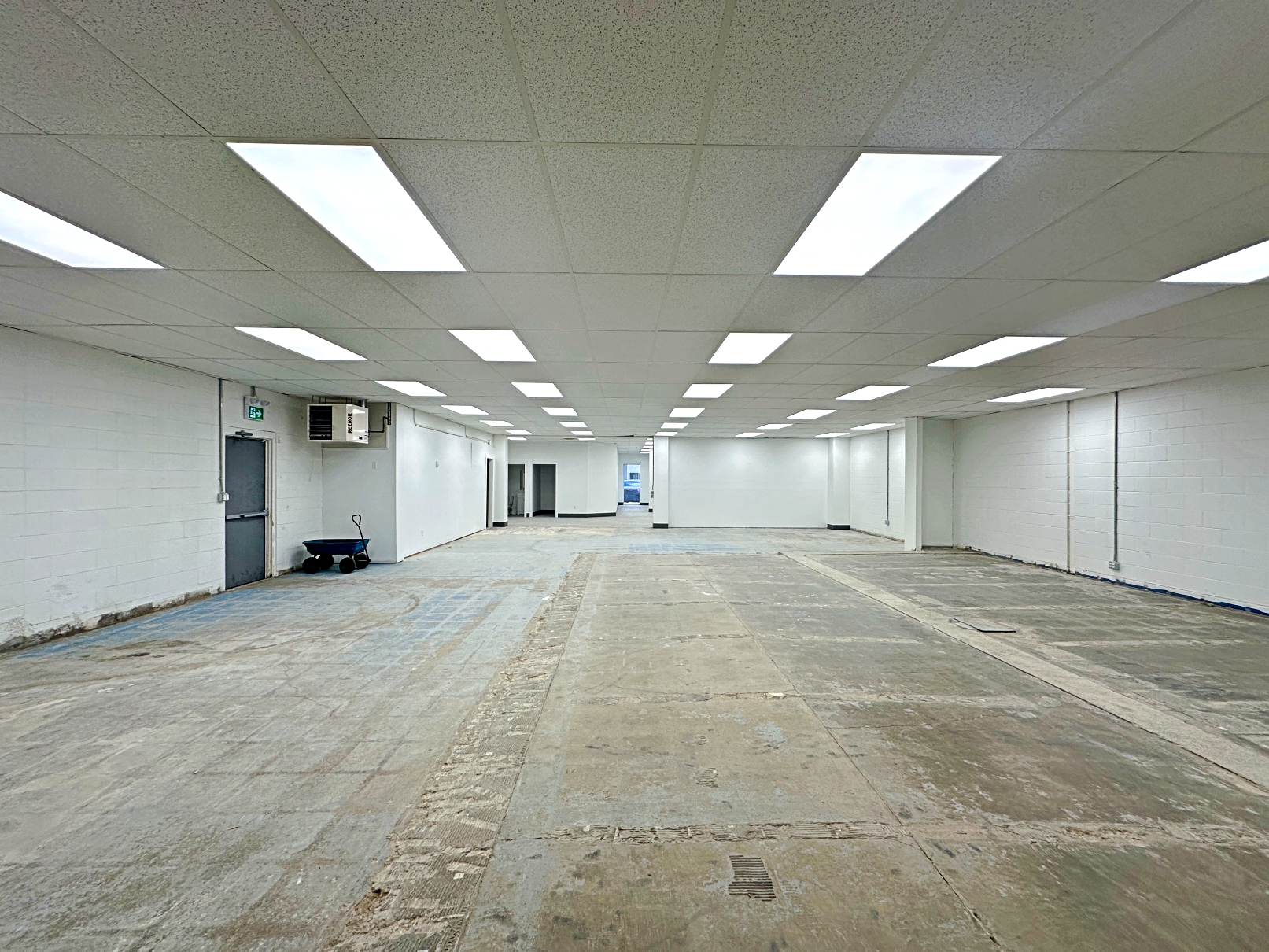 - Features large storefront display windows, a spacious front showroom, two washrooms, a staff room with roughed-in plumbing for a kitchenette, and a rear warehouse area with potential to add a rear double loading door for flexible access. Three dedicated parking stalls are available.