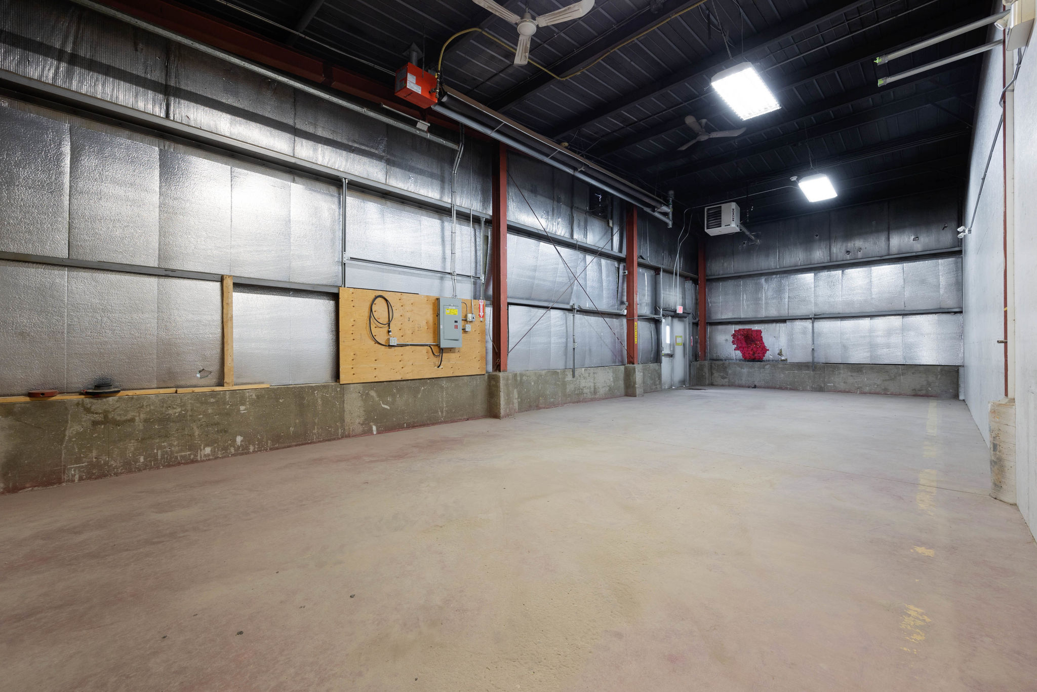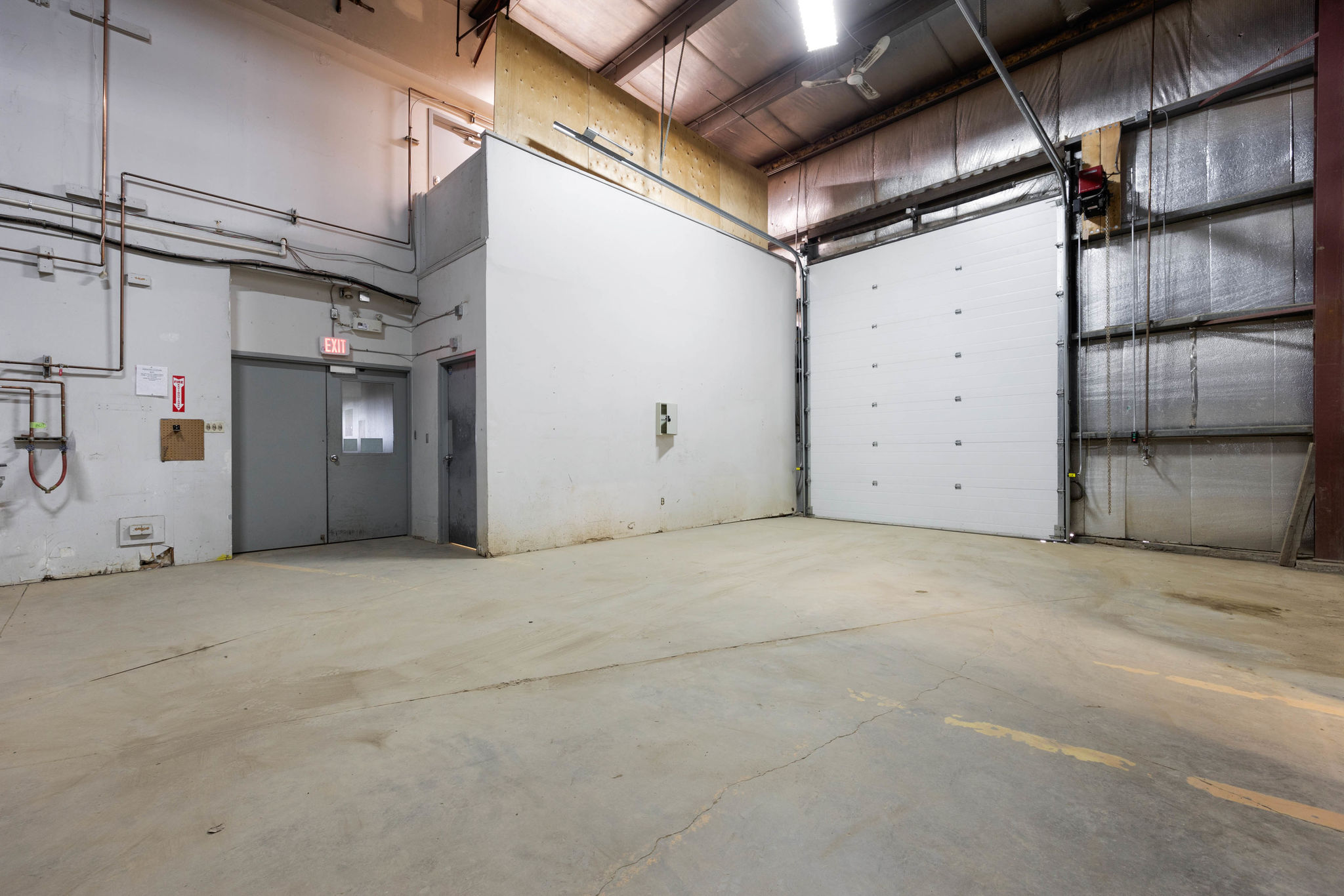 - Radiant & overhead forced-air heating, Floor Drain, and Durable metal-clad construction